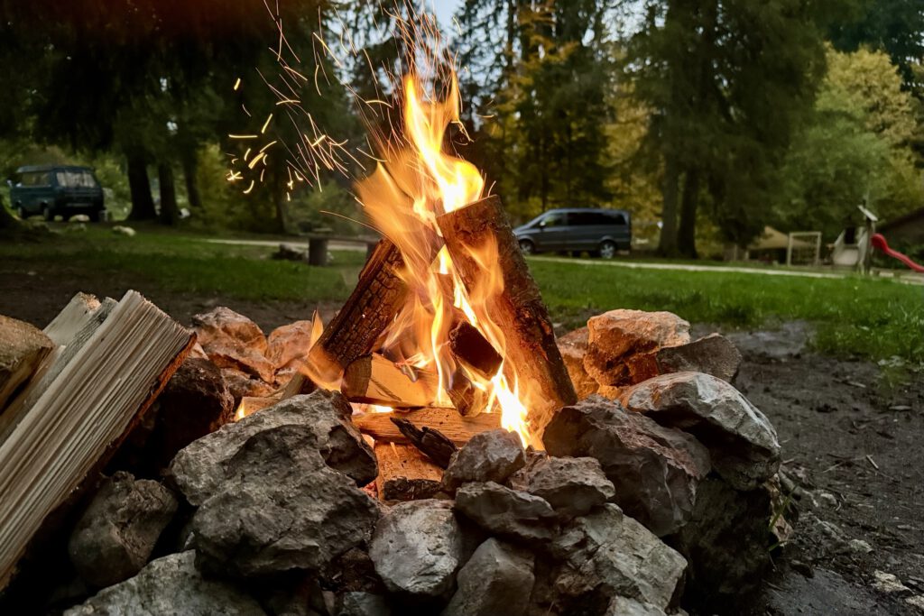 Die Tage hier oben sind frisch und die Nächte kalt. Da freut es einen umso mehr, das man an jedem Stellplatz ein Lagerfeuer machen kann. Das nötige Holz kann man vor Ort kaufen und bei Bedarf selbst klein hacken. Meine Fuhre Holz am ersten Tag war leider zu feucht – da war es anstrengend ein wärmendes Feuer am Laufen zu halten. Am nächsten Tag konnte ich aber den Rest gegen neues, trockenes Holz „umtauschen“.