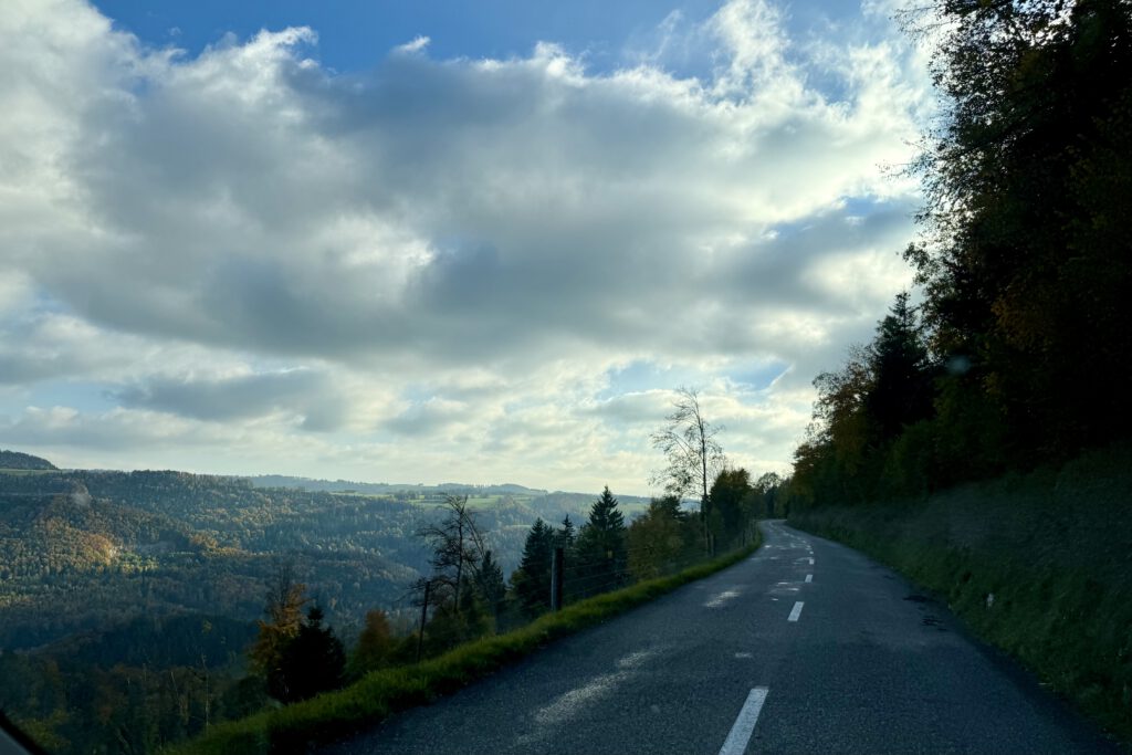 Alleine die Anfahrt durch das Jura ist schon beeindruckend. Von der französischen Seite fährt man über viele Kilometer über Serpentinen, und dann über eine spektakuläre Hochstraße, die wunderschöne Ausblicke über die Berge bietet.